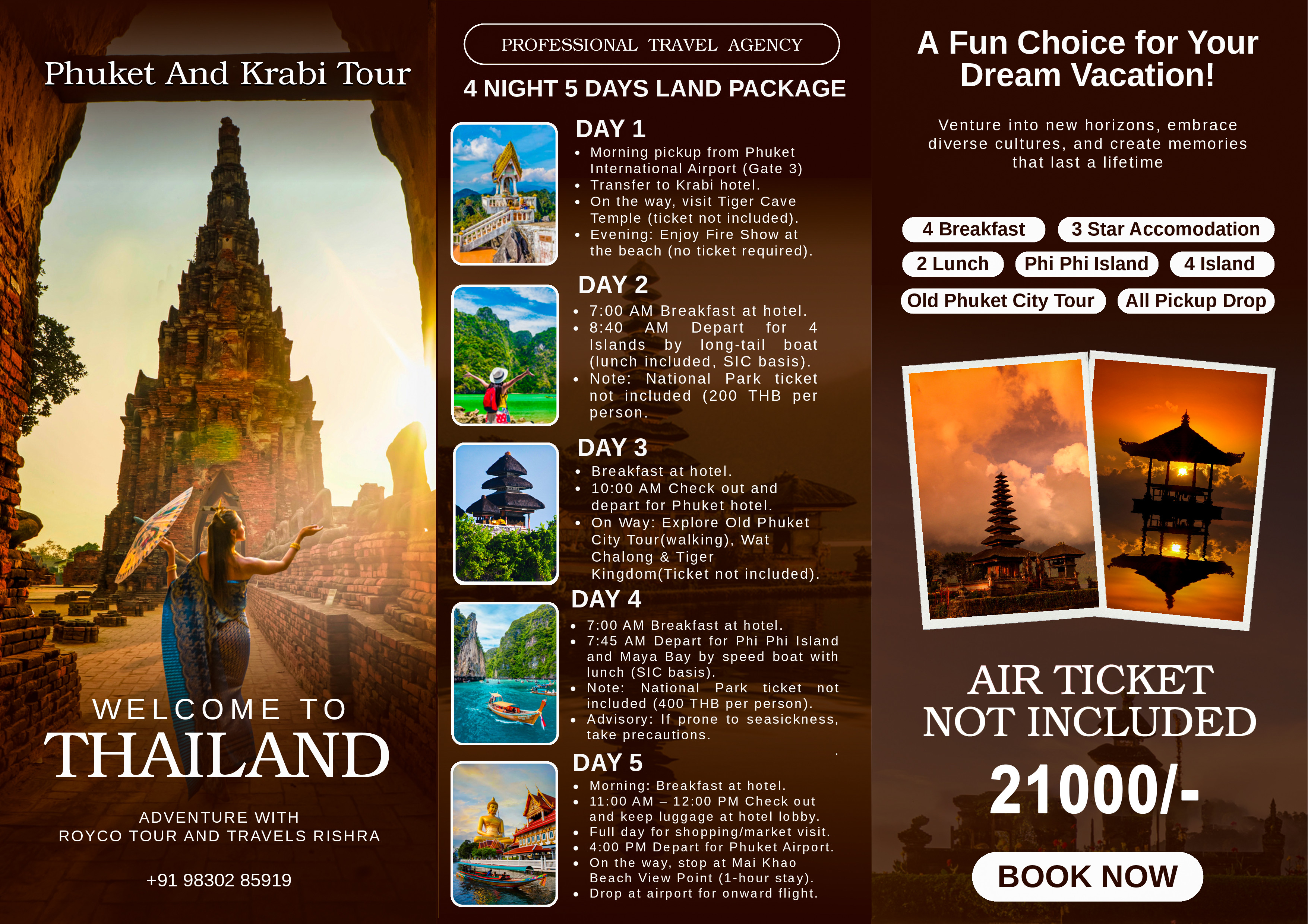 From sunrise temples to rooftop bars, let Royco Tours be your guide into the magic of Thailand. The city never sleeps — and neither will your adventure.
